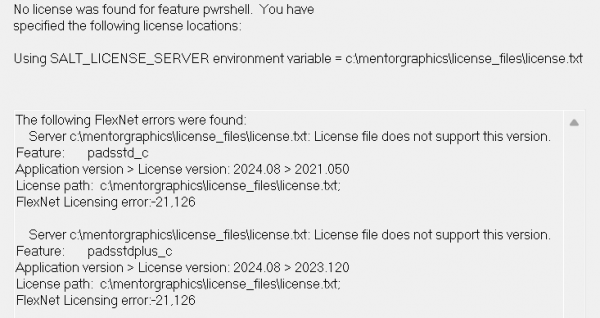 라이센스 교체하여 pads 실행하는 과정에서 첨부 내용과 같이 메세지가 떳습니다.