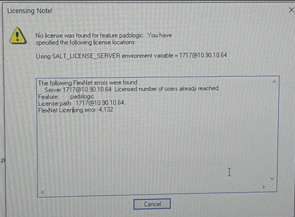 안녕하세요 SJI의 이준호입니다. 다름이 아니라, PADS LAY OUT 열면 첨부파일의 사진과 같이 라이센스 오류 및 사용자 수가 많다는 내용처럼 보이는 문구가 전시됩니다. 본서버 주 PC에서는 PADS가 이상없이 사용되는데 다른 PC에서는 PADS 실행시 해당문구가 전시되어 해결방법 가이드 알려주시면 감사하겠습니다.