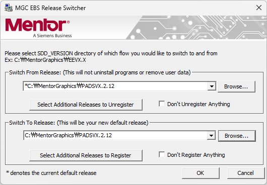 찾아보니 C:\MentorGraphics\win32\ReleaseSwitcher.exe 를 실행하면 해결된다는 글을 봤는데, 똑같이 따라해도 실패했습니다.
